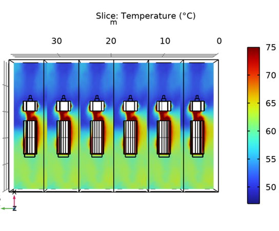 • Multiple design combinations (fan sizes, placement, ΔT) using parametric sweeps